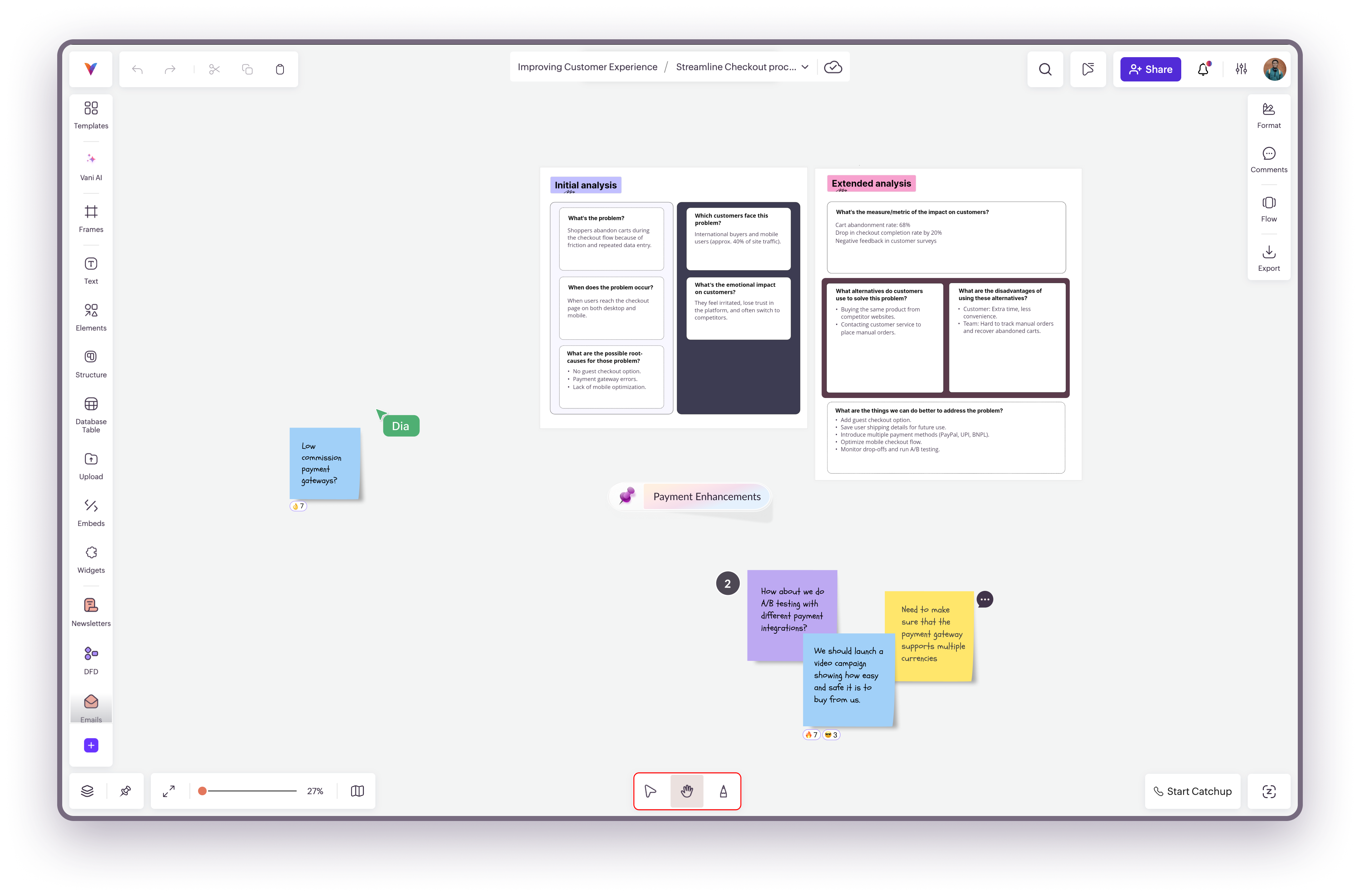 But when everything stays as scattered notes, it becomes harder to follow over time. Grouping related notes, aligning them, or moving them into Frames helps reduce that noise.