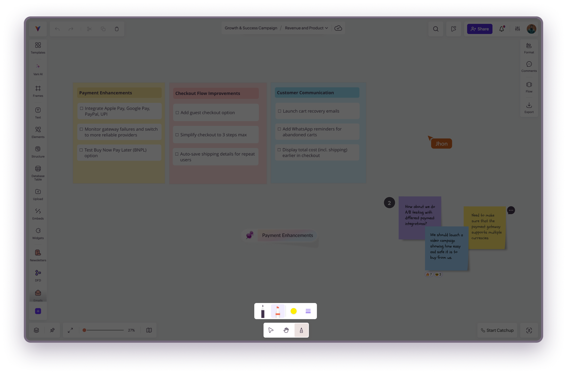 Use Pen to sketch shapes, circle items, or write freehand notes.