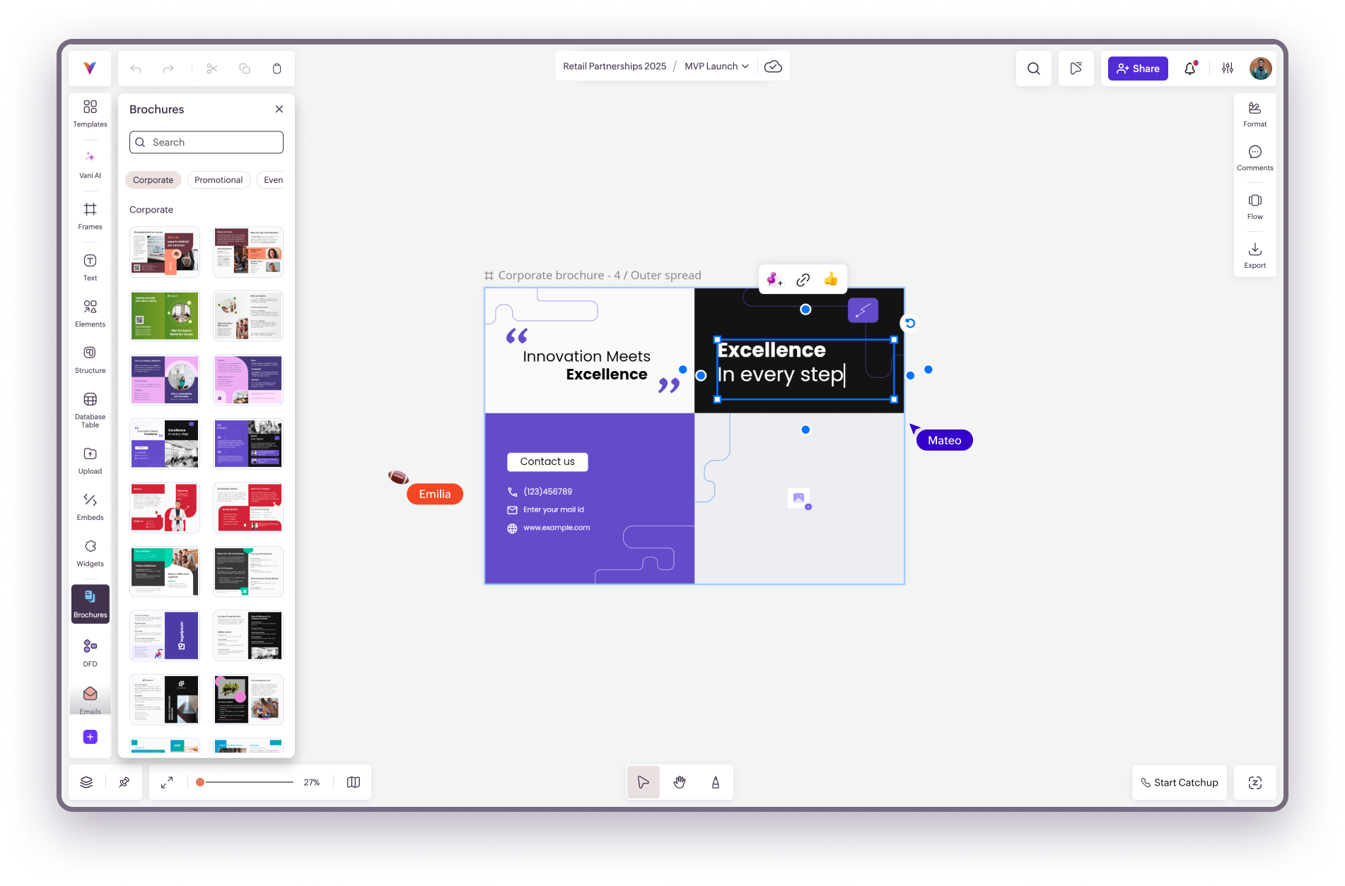 Brochures Kit provides tri fold and multi column brochure layouts. These templates help you display information in an organized, multi section format suitable for product details, services, events, or informational content.