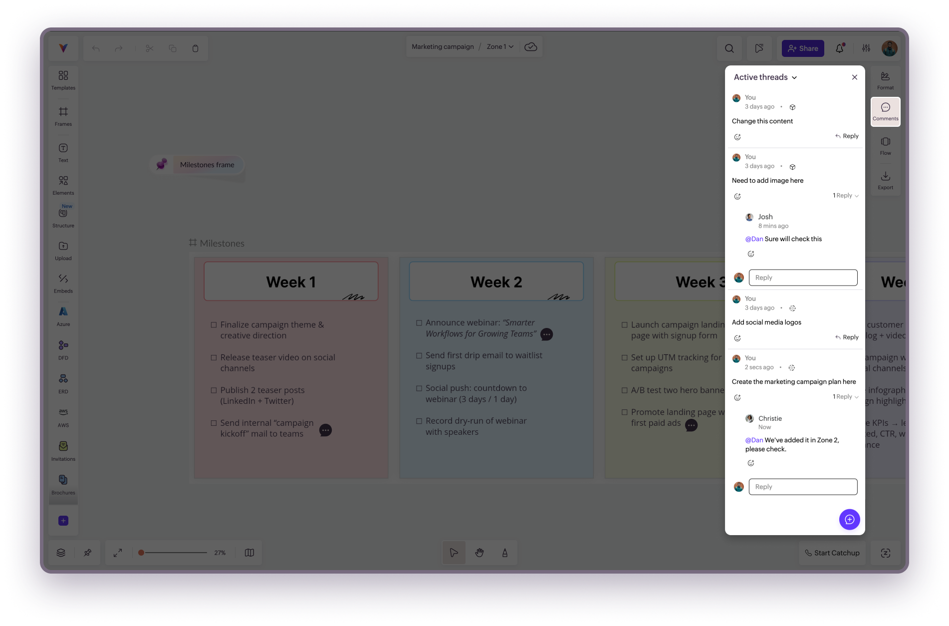 Comments help you leave feedback, ask questions, suggest changes, or brainstorm on a different topic without interrupting the flow of content in the Space.