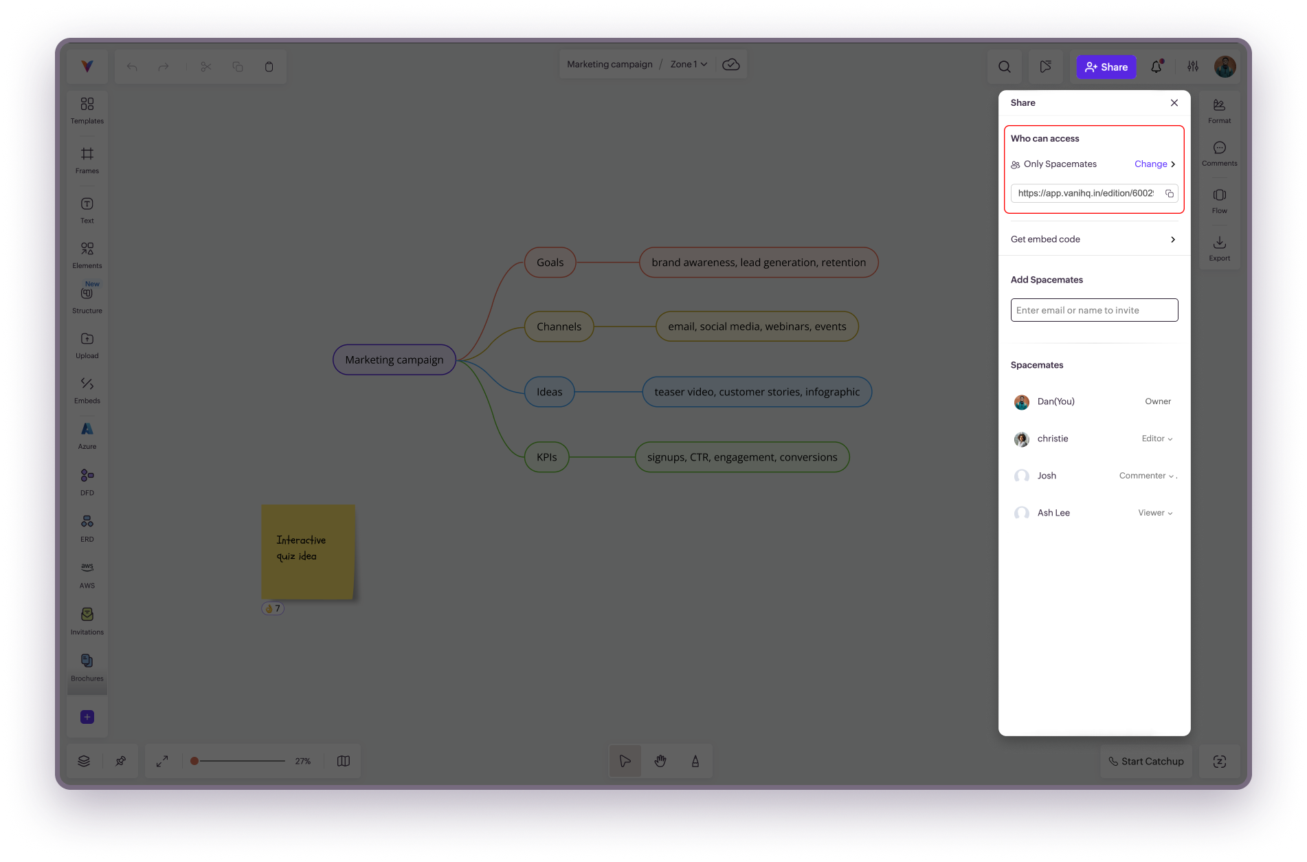 When you share a Space externally, you control how much access external users get. You can also protect the link with extra settings for privacy and security.