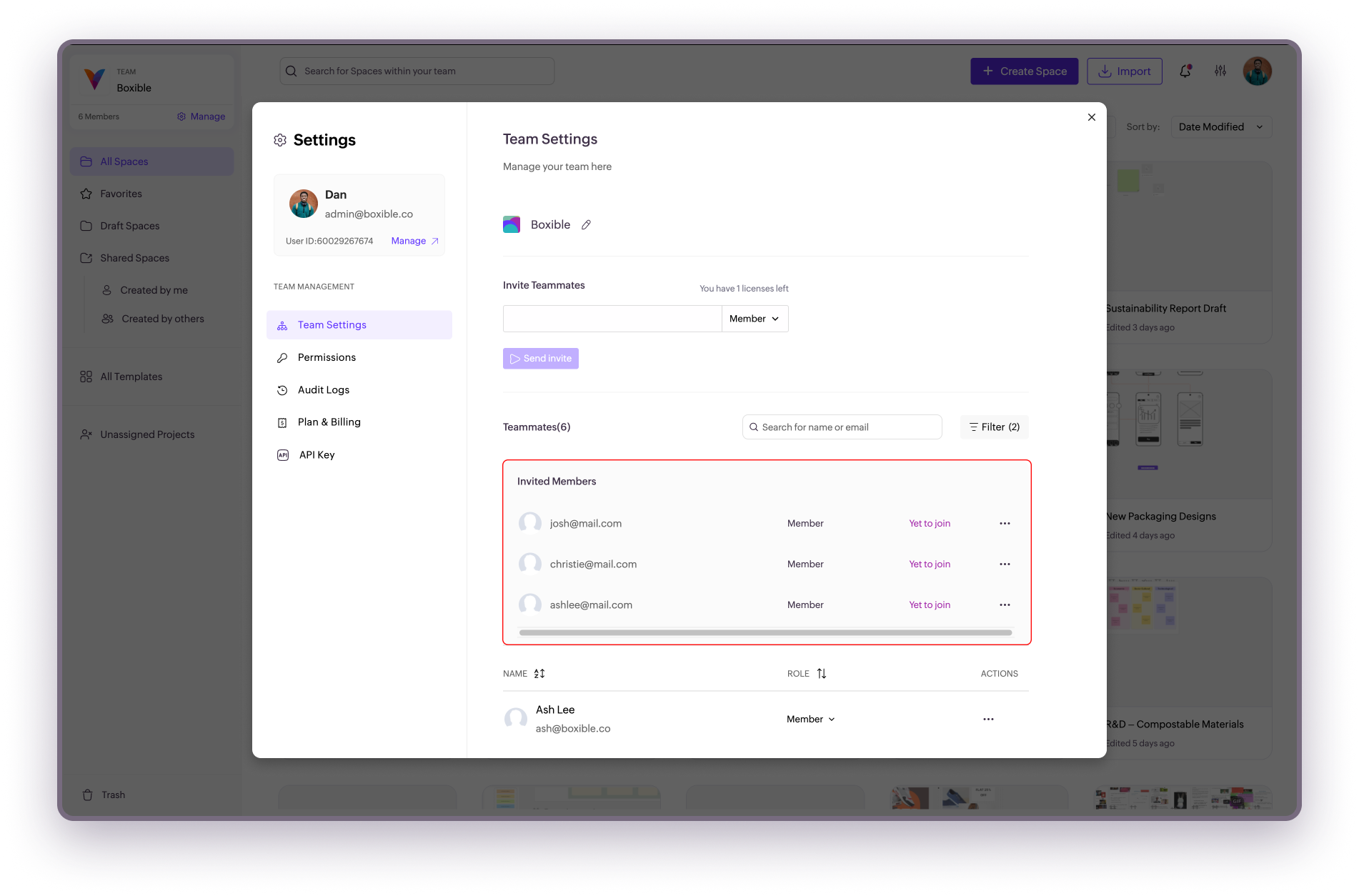 Inviting teammates