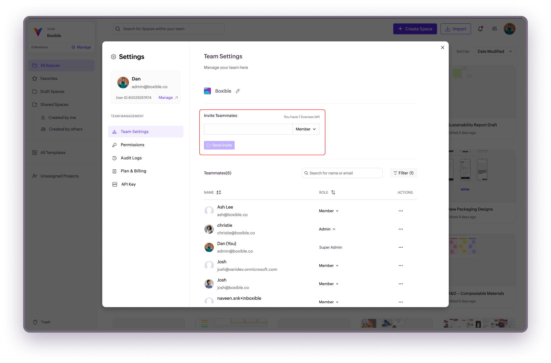 Only Admins and Super Admins can invite teammates.