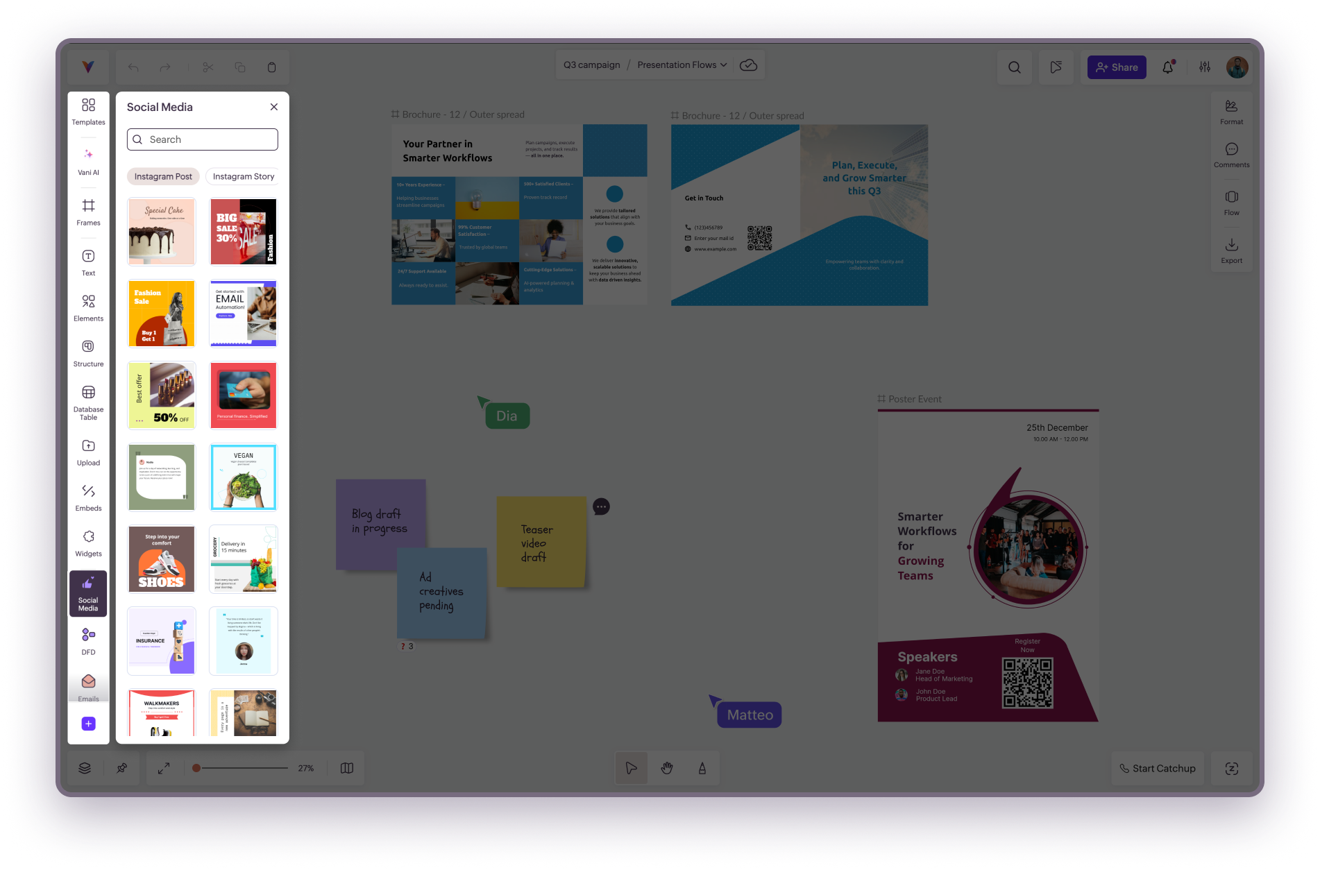 - Social media: Ready-to-use layouts for posts, ads, stories, and banners