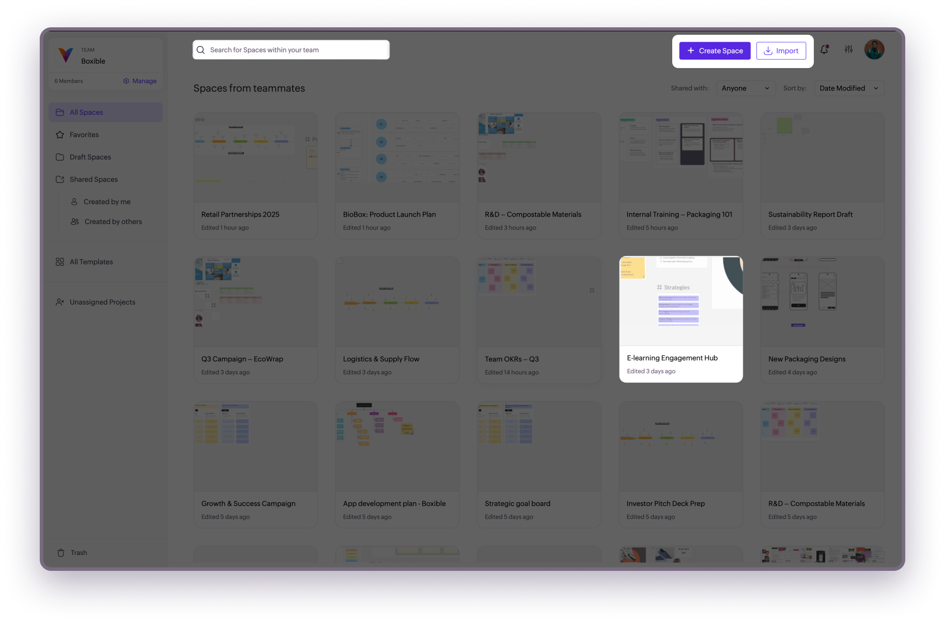 Import a Space: Bring in boards from Jamboard or Miro using the Import button in the top right.