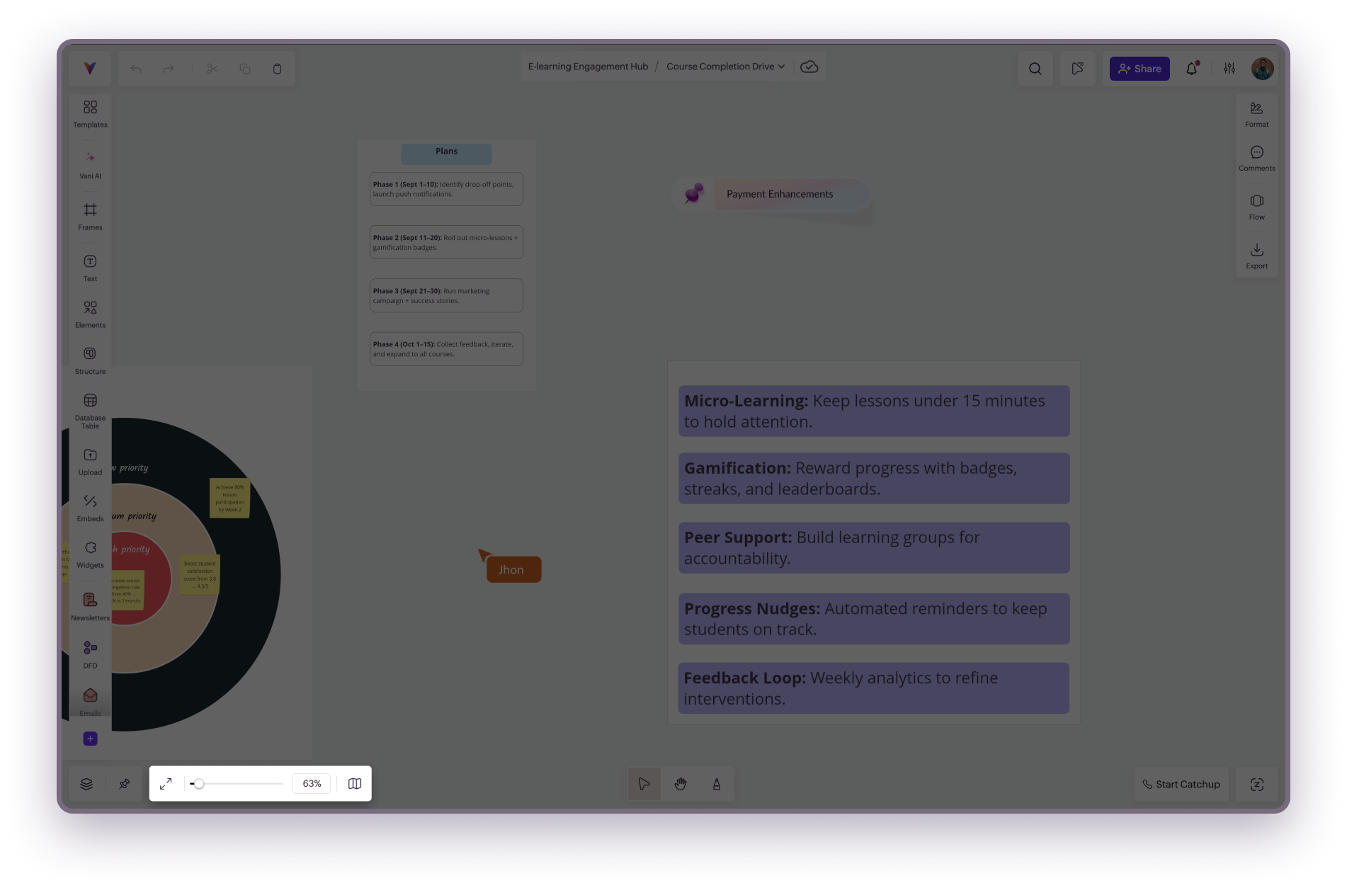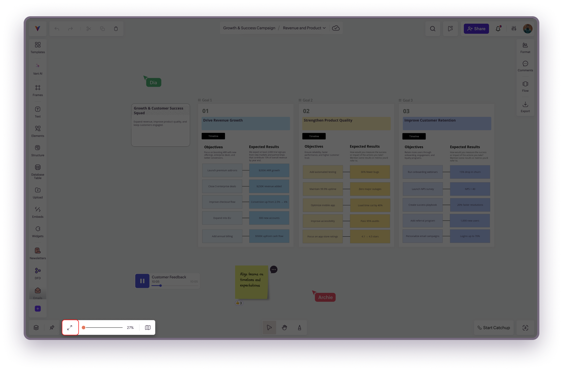 In Vani, there are multiple ways to navigate your Space. Whether you’re tracking ideas, exploring different areas, or collaborating with teammates, you can move around quickly without losing your place on the infinite canvas.