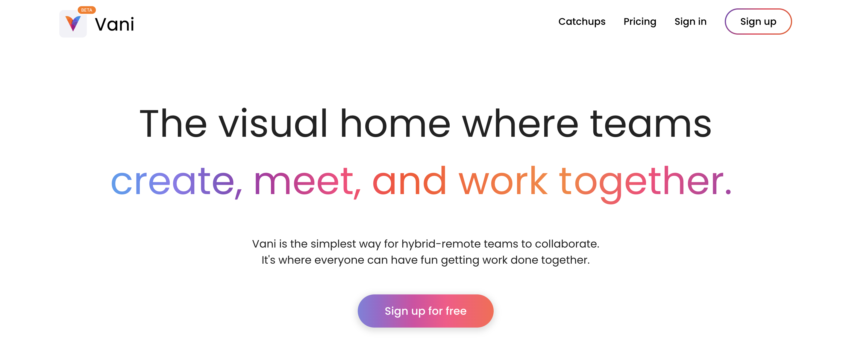 Vani is a visual collaboration platform where teams create, meet, and work together on a shared infinite canvas. Whether you're brainstorming for new ideas, mapping workflows, organizing projects, planning campaigns, or reviewing designs together, ...
