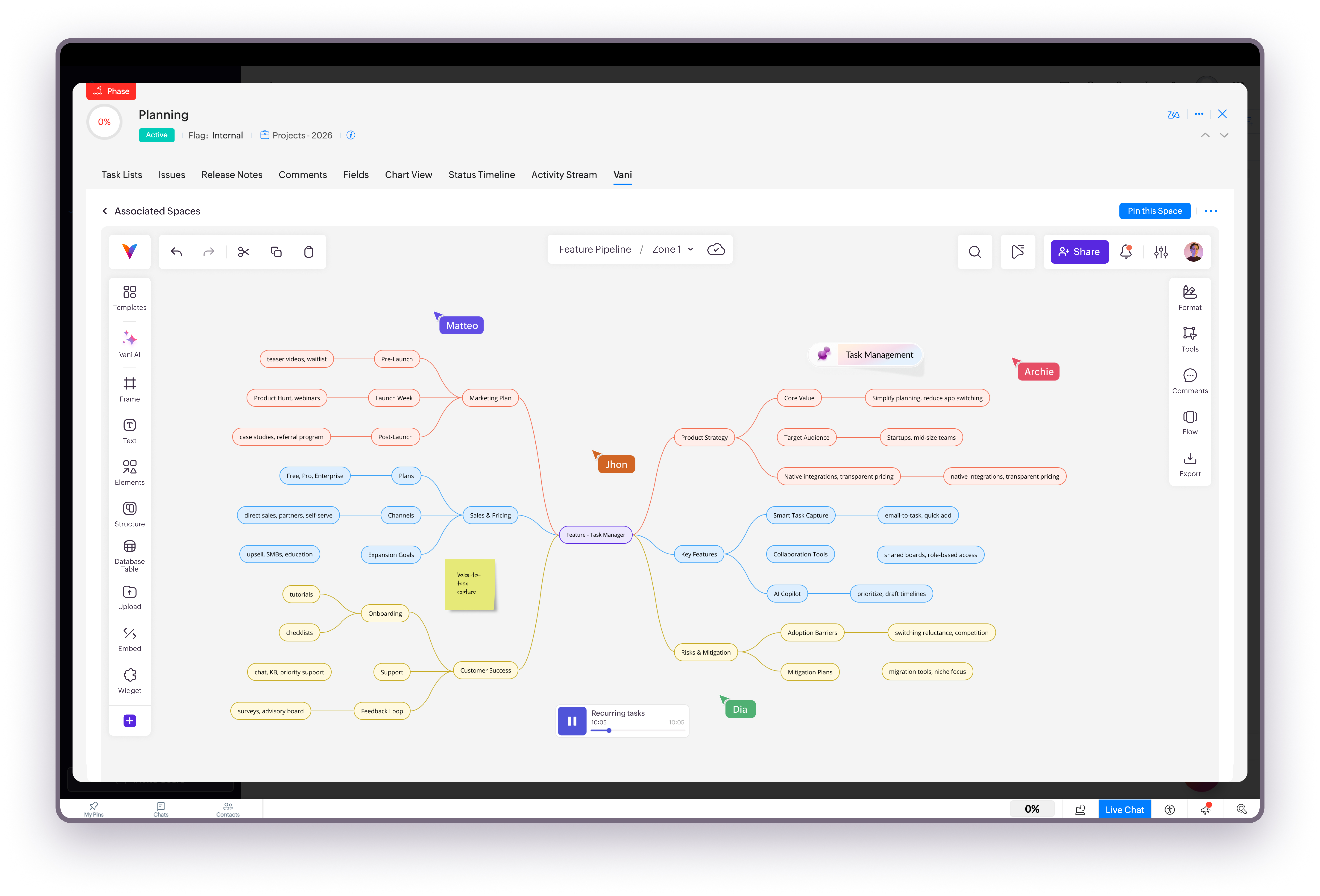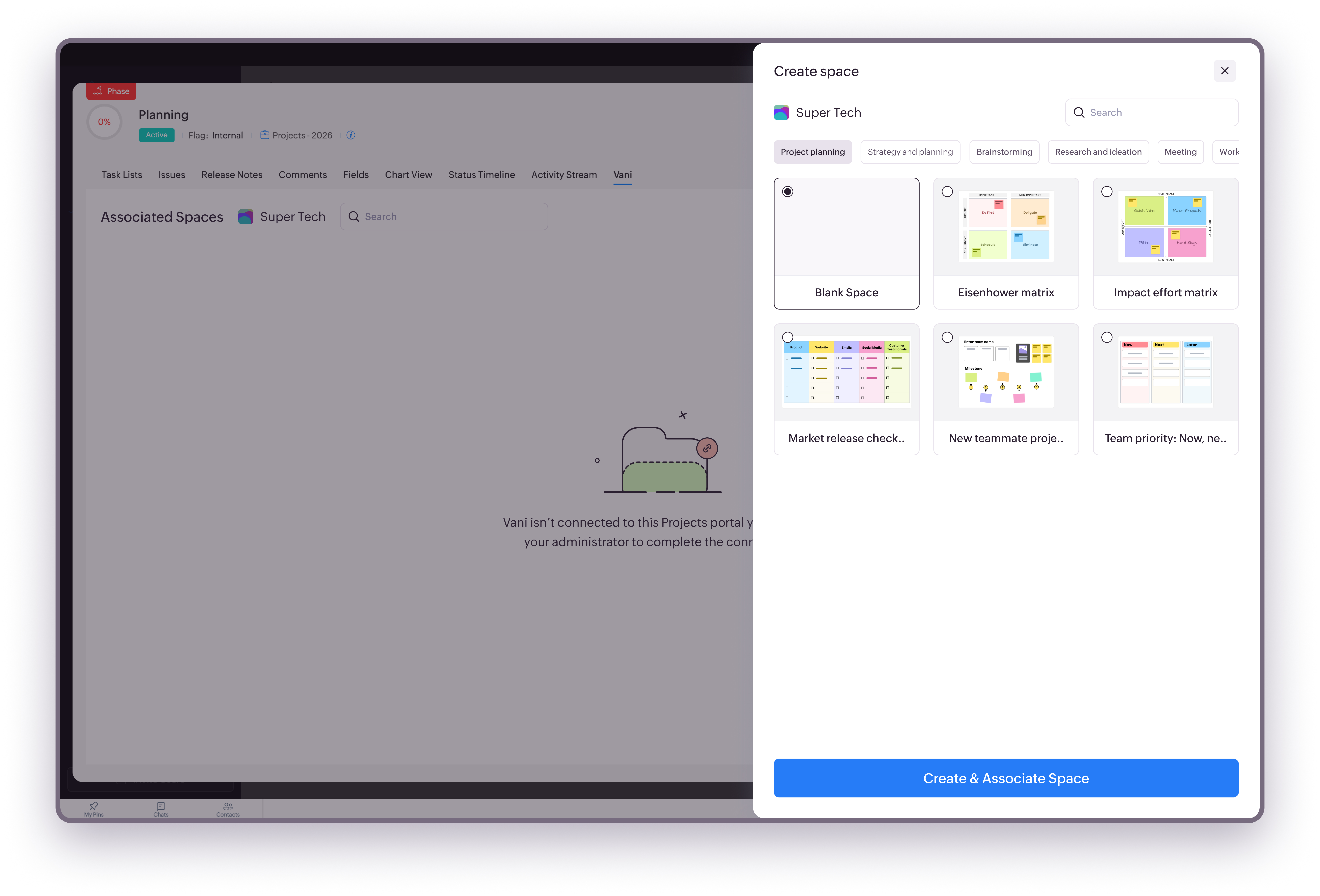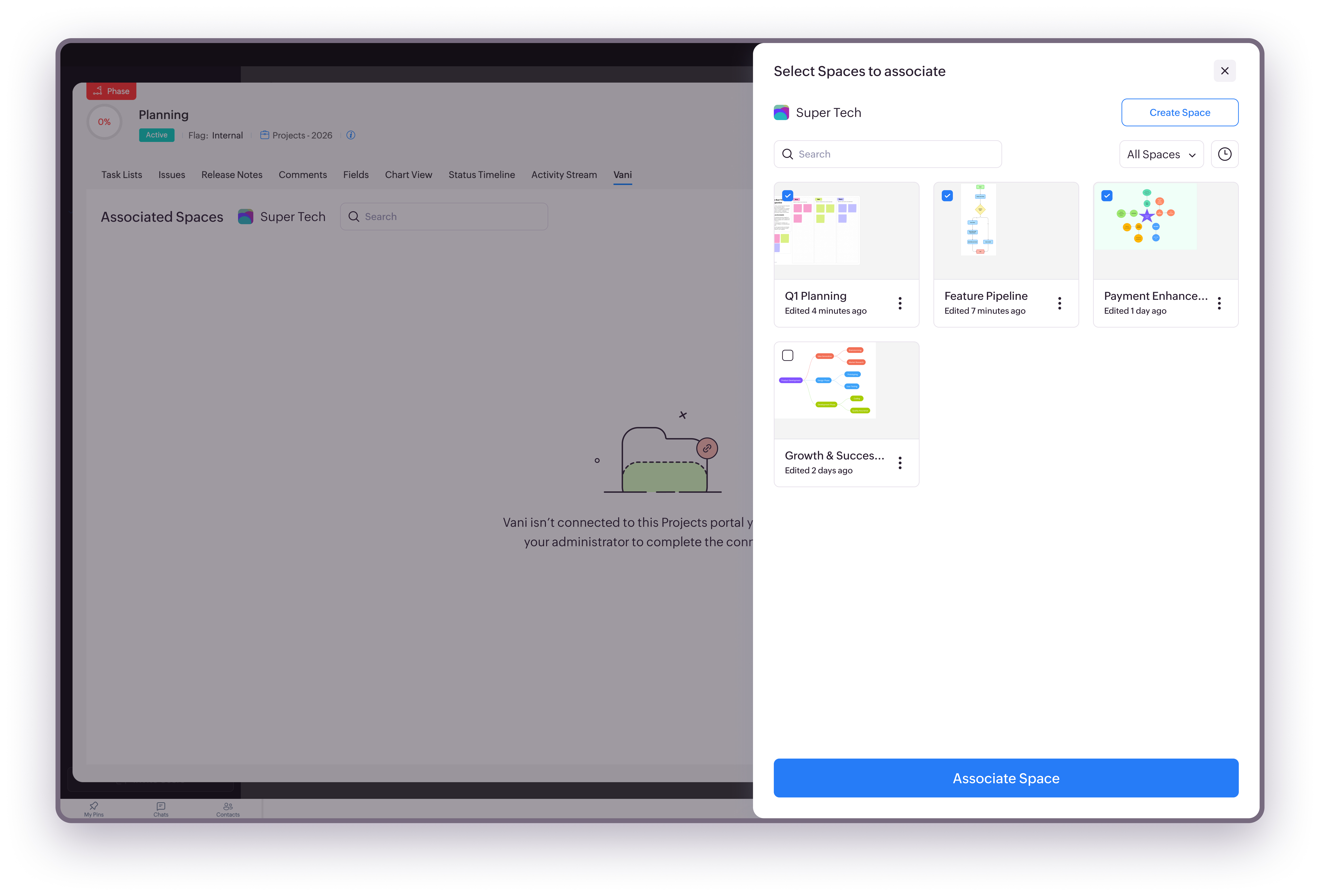 You can associate Vani Spaces with project phases to keep visual context connected to specific pieces of work within a project.