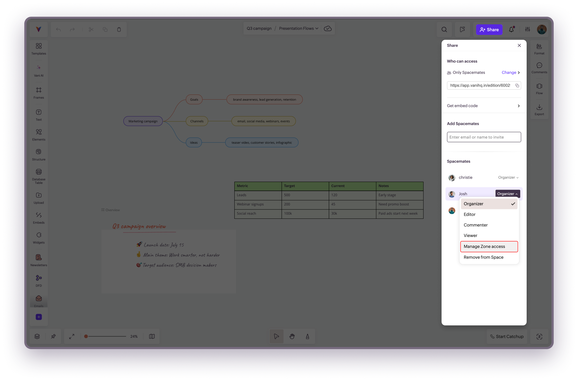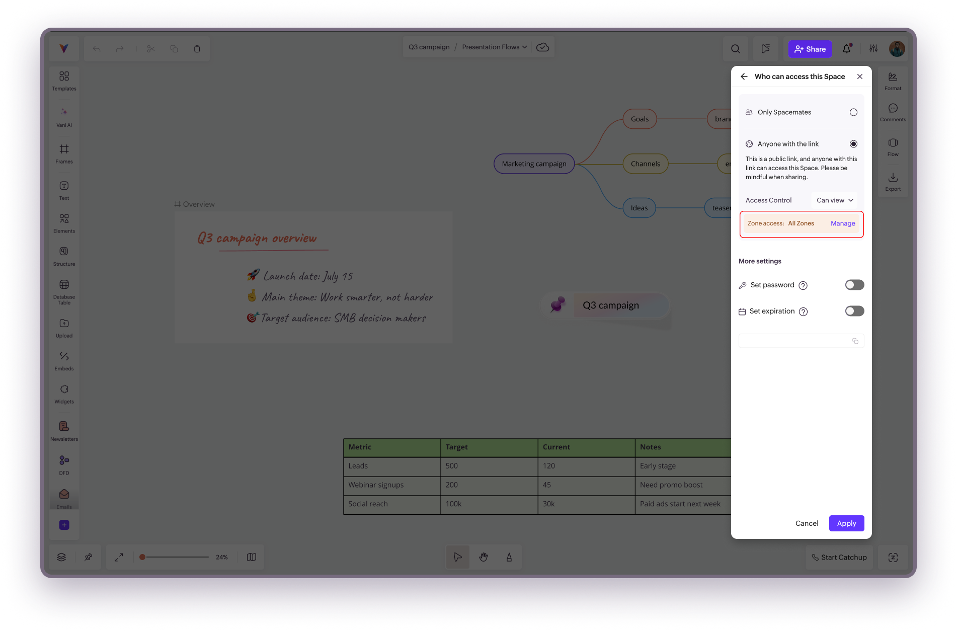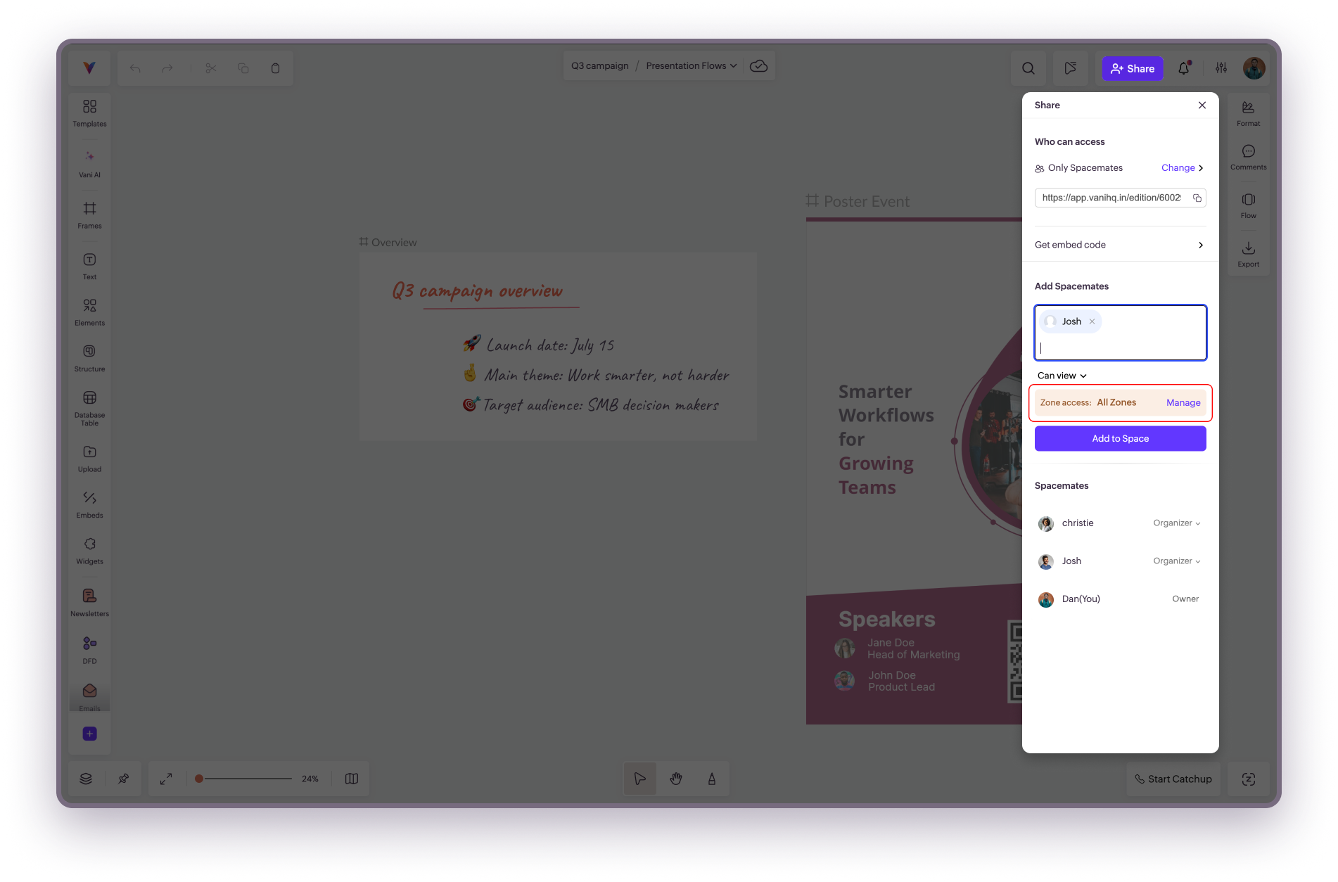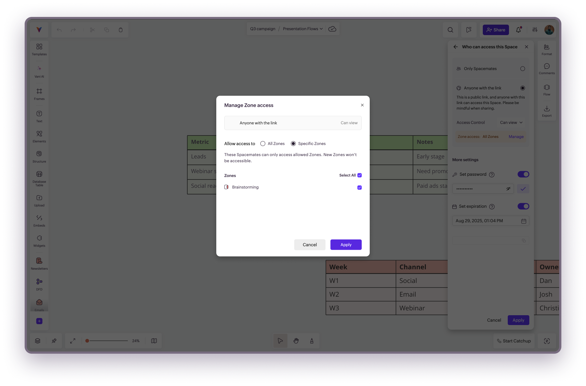 Zone access lets you control who can see and work in each Zone within a Space. This is helpful when different parts of your Space are meant for different teams or external collaborators.